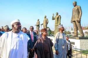 Governor Rochas Okorocha of Imo state was all smiles at the weekend as he took Vice-President Yemi Osinbajo and Secretary to the Federal Government, Boss Mustapha to his pavilion of statues in Owerri, the capital city.