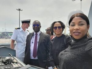 Commercial Manager, APM Terminals Apapa, Temilade Ogunniyi (right); Procurement Manager, APM Terminals Apapa, Chinyere Adenaike (2nd right) and other guests at the UK Trade Exposition onboard the Royal Navy ship HMS Trent in Lagos