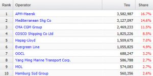Alphaliner expects the industry to reach 22 million TEUs within the next 12 months as a result of the delivery of over 80 ships of 10,000-21,000 TEUs capacity.
