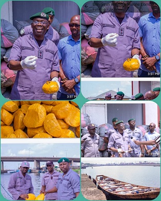 The Western Marine Command’s resolve to keep re-strategizing its operational modalities especially in the area of anti-smuggling activities has continued to pay off. The result of the intensified efforts by the ever focused and eagle-eyed officers of the Command on Thursday 20 February, 2025 at about 2300 hours (11pm) inside the sea has led to the highest single operational seizure of cannabis sativa under the exceptional leadership of the Customs Area Controller, Comptroller PK Bamisaiye.
