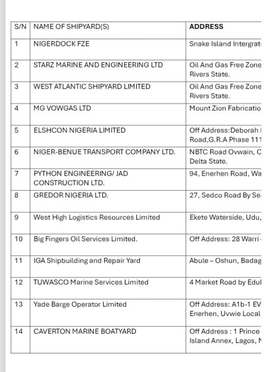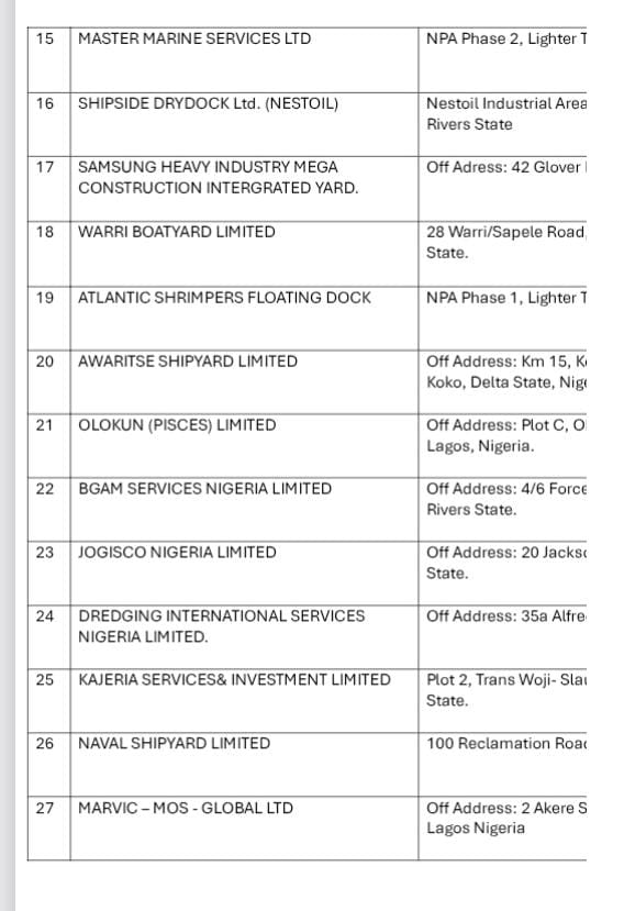 “These are the only shipyards that have so far complied with the Agency’s stringent regulatory, safety, and operational standards” NIMASA stated.