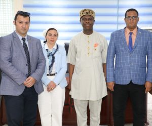 L-R: I.T Project Manager, INTERPOL, Christopher Hakobyan; Senior Project Manager, Global Outreach and Region Support of INTERPOL, Noha Amer; Director General, Nigerian Maritime Administration and Safety Agency (NIMASA), Dr. Dakuku Peterside; and Eleyatt Nehah of INTERPOL during a partnership meeting held at the Headquarters of NIMASA in Lagos.
