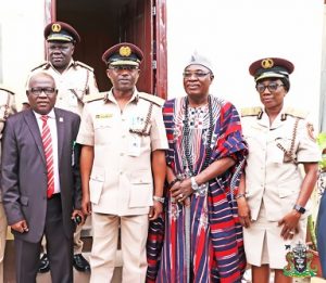 The Representative of the Managing Director, Nigerian Ports Authority (NPA), the General Manager, Corporate and Strategic Communications (C&SC), Engr. Adams Jatto, the Comptroller General of Nigeria Immigration Service (NIS), Muhammad Babandede, the Ora of Orale, Chief Bayo Akolade, the Assistant Comptroller General, NIS, Modupe Anyaechi during the official Commissioning of the Storage Facility Building at the Nigeria Immigration Service (NIS) in Ikoyi, Lagos.